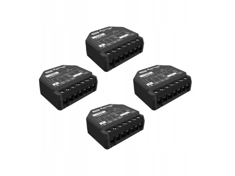 Shelly 2PM Gen3 – WLAN rullgardinsbrytare relämodul, 2 kanaler - 16 A, Energikostnadsmätare, app för iOS/Android, Shelly 8MB-chip, kompatibel med Alexa & Google Home – 4 Stycken