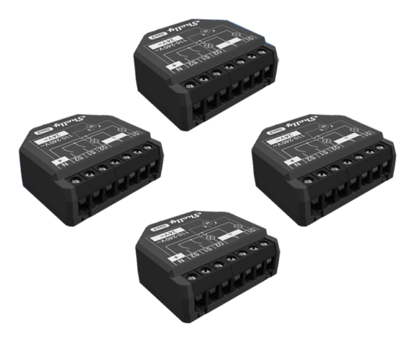 Shelly 2PM Gen4, WLAN-driven smart reläströmbrytare, 2 kanaler, 16 A, effektmätning, rullgardinsswitch, hemautomatisering, ingen hubb krävs, Alexa, HomeKit & Googlе, Zigbee, Matter (4 stycken)