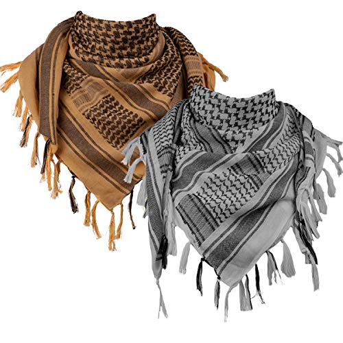 Free Soldier Militärhalsduk, Shemagh, herrhalsdukar, taktisk ökenscarf, huvudscarf för män och kvinnor Grå grå och brun uppsättning 43.3 * 43.3 inches(110 * 110cm)