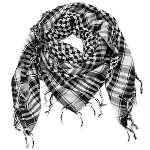 TRIXES Shemagh Keffieh svart och vit ökenhalsduk i lätt bomull i militär stil för simulering av en armé i Airsoft