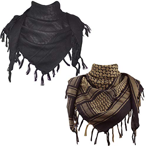 EXPLORE LAND Bomull Military Shemagh Tactical Desert Keffiyeh Scarf Wrap, Svart, svart och brun, one size