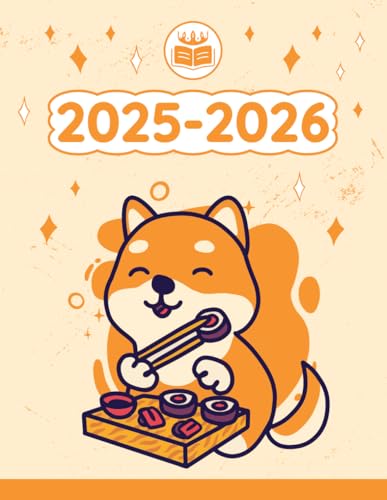 2025 2026 Planner Kawaii Shiba Dog Sushi Food: Weekly and Monthly with Calendar (12 Month, Goals, Water & Sleep Tracker...) Birthday Funny Cute Gift Idea for Japanese Anime Lovers in School & Work