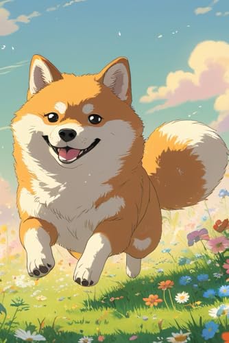 Shiba Joy: Happy Dog in a Sunny Flower Field Notebook: Shiba Notebook 6 x 9 inches, cute dog diary