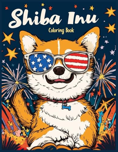 Shiba Inu Dog Coloring Book: Cute Shiba Inu with American Flag Sunglasses, Patriotic Dog Coloring Pages for Kids & Adults