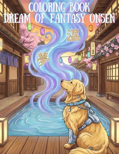 Dream of Fantasy Onsen: Cyberpunk Dog Coloring Book: Cute Shiba Inus, Corgis & More in a Futuristic Japanese World with Kanji Art for Stress Relief and Relaxation