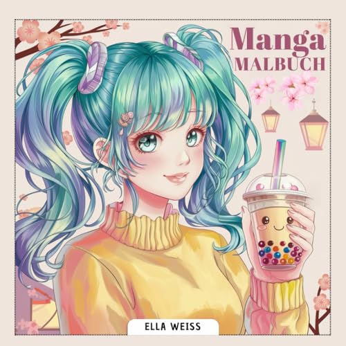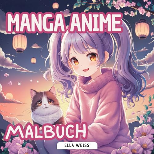 Manga Anime Malbuch für Mädchen ab 8 Jahren | Schönes Geschenk für Mädchen & Teenager: 50 entzückende Motive (Shojo, Kawaii Katzen, Shiba Hund, Pferde) zum Ausmalen und Entspannen