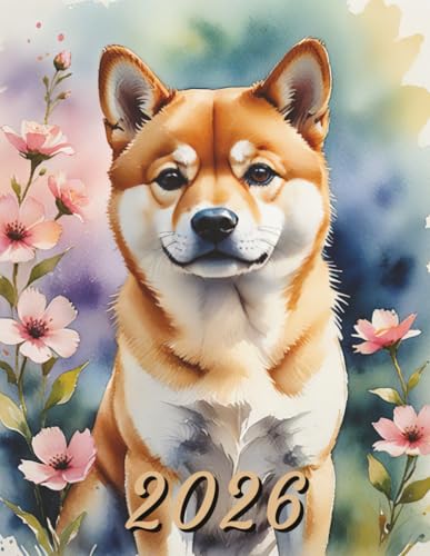 2026: Large Monthly Calendar Planner – Watercolor Shiba Inu Dog