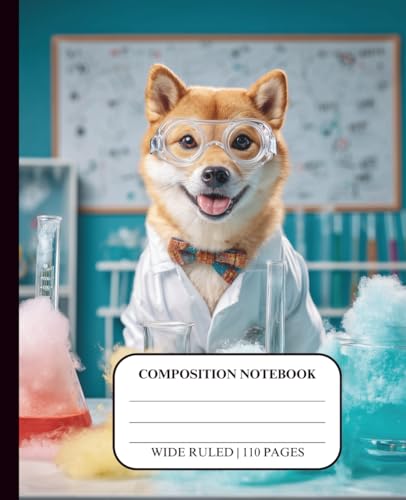 Dog Notebook for Kids Ages 8-12 Wide Ruled Composition Journal for Boys Teens School Supplies Handwriting Middle High Homeschool Creative Writing ... Theme Cover Science Chemistry Shiba Inu