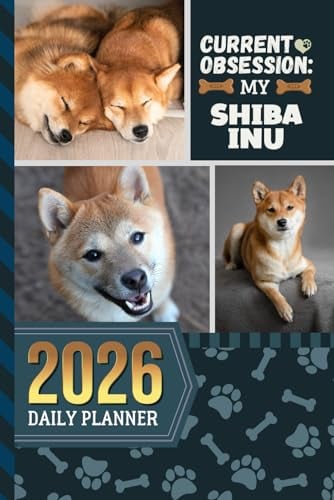 2026 Daily Planner: Hardcover / One Page Per Day / 6x9 Dated Organizer With Hourly Diary - 1 Hour Time Slots / To Do List / Notes Section / Scheduling Gift / Shiba Inu Dog Art Cover