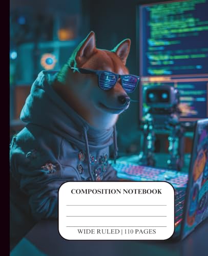 Dog Notebook for Kids Ages 8-12 Wide Ruled Composition Journal for Boys Teens School Supplies Handwriting Middle High Homeschool Creative Writing ... Theme Cover Shiba Inu Gamer Futuristic Laptop