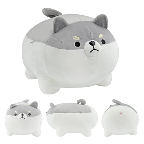 SNOWOLF Shiba Inu plyschkudde, plyschdjur, hund, söt Corgi Akita, mjukt plyschdjur, komfortkudde, present till flickor och pojkar (grå, 120 cm)