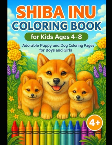 Shiba Inu Coloring Book for Kids Ages 4–8: Adorable Puppy and Dog Coloring Pages for Boys and Girls