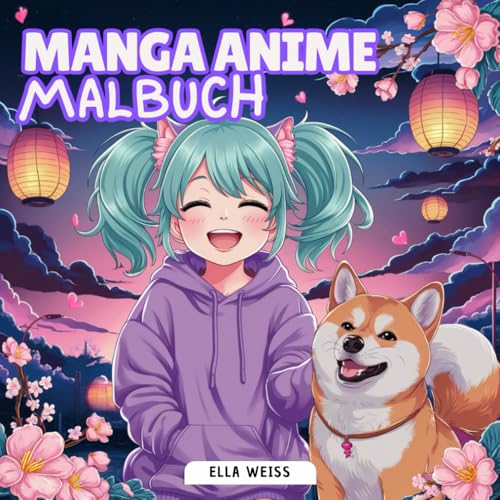 Manga Anime Malbuch für Mädchen ab 8 Jahren | Cooles Geschenk für Mädchen, Kinder & Teenager: 50 niedliche Motive (Shojo Mädchen, Kawaii Katzen, Shiba Inu Hund, Pferde) zum Ausmalen & Entspannen