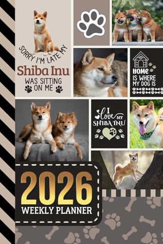 2026 Weekly Planner: Hardcover / 6x9 Dated Diary With To Do List - Habit Tracker - Notes Section / Agenda Gift / Shiba Inu Dog - Funny Quote Animal Art Cover