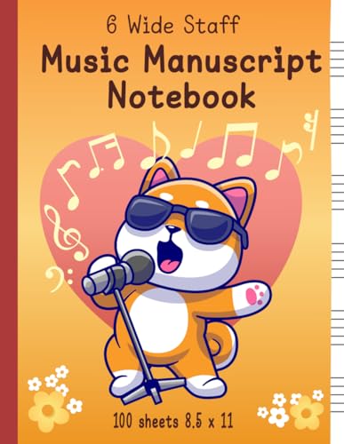 Six Wide Staff Music Manuscript Notebook: for Kids to Compose Songs - Blank Pages with Reference on Musical Notes. Cover Design: Shiba Inu Dog