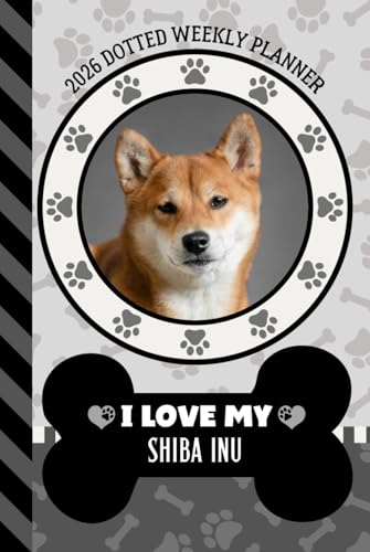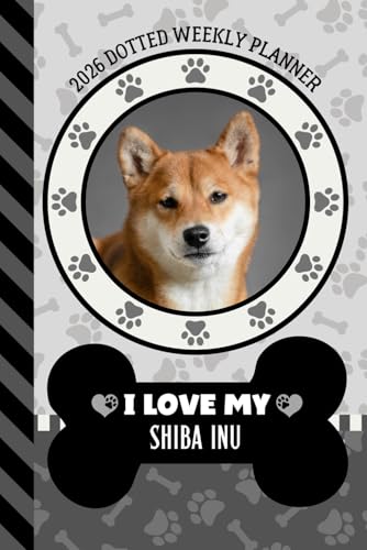 2026 Dotted Weekly Planner: Hardcover / Dated 6x9 Vertical Weekday Layout With Dot Grid Note Pages / Habit Tracker / Jan - Dec / Small Personal Diary / I Love My Shiba Inu Dog Art Cover