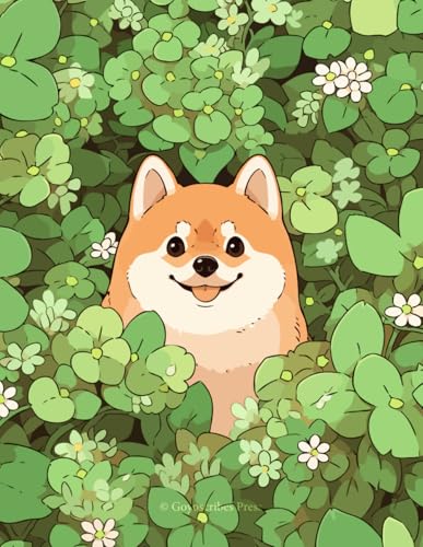 Minimalist Art Notebook Journal: Shiba Inu Dog Among Green Clovers and Flowers