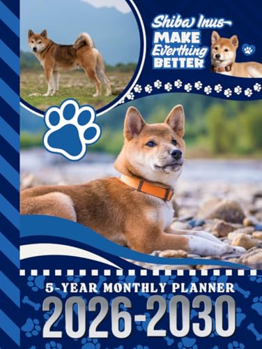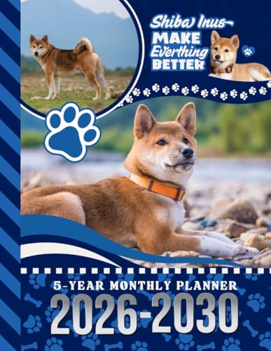 5-Year Monthly Planner 2026-2030: Hardcover / Dated Large / 60 Month Agenda / With Notes Pages - To Do List / Shiba Inu Dog Art Cover Design