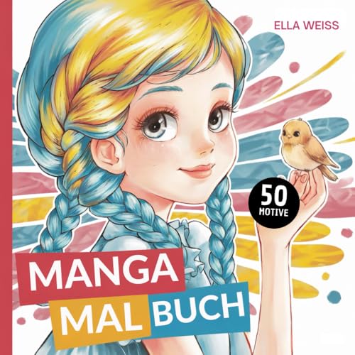 Manga Anime Malbuch für Mädchen (ab 8 Jahren) als Geschenk für Kinder und Teenager: 50 grosse Motive (Kawaii Katzen, Shiba Hund, Pferde, Shojo Portraits) - Fördert Kreativität & Feinmotorik