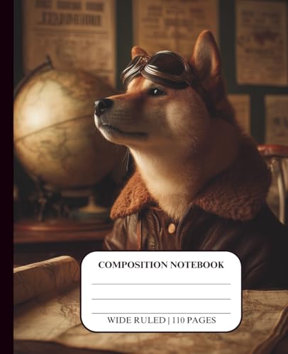 Dog Notebook for Kids Ages 8-12 Wide Ruled Composition Journal for Boys Teens School Supplies Handwriting Middle High Homeschool Creative Writing ... Design Theme Cover Shiba Inu World Explorer