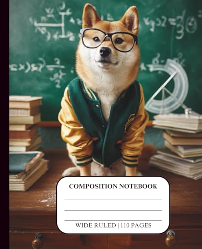 Dog Notebook for Kids Ages 8-12 Wide Ruled Composition Journal for Boys Teens School Supplies Handwriting Middle High Homeschool Creative Writing ... Theme Cover Smart Shiba Inu Math Chalkboard