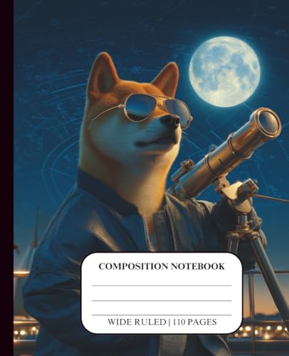 Dog Notebook for Kids Ages 8-12 Wide Ruled Composition Journal for Boys Teens School Supplies Handwriting Middle High Homeschool Creative Writing ... Design Theme Cover Shiba Inu Astronomy Moon