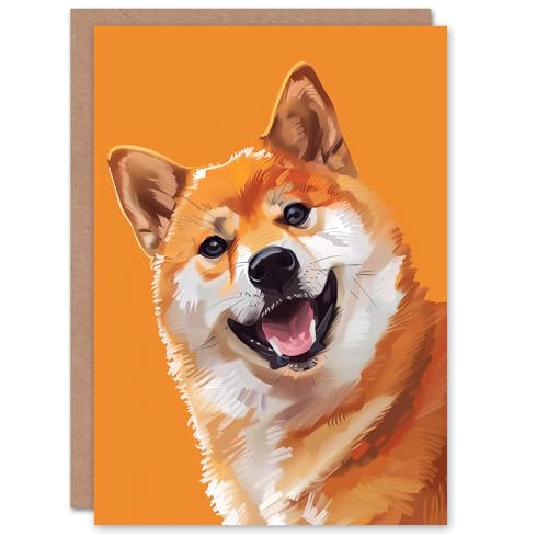 Artery8 Greeting Card Happy Shiba Inu Dog Lover Pet Portrait Orange Blank For Him Or Her Art Birthday Card
