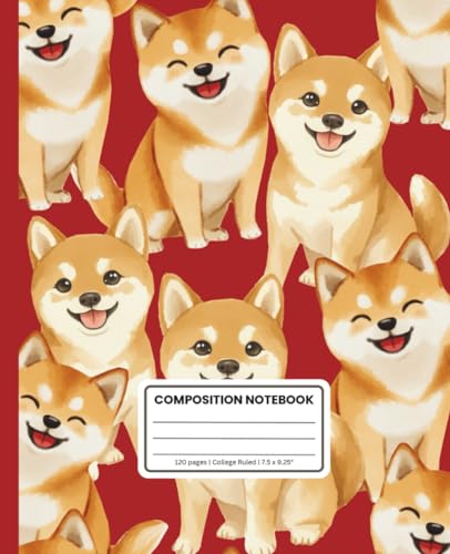Happy Shiba Inu Dog Composition Notebook – College Ruled Wide Lined Journal for Kids, Teens & Dog Lovers – Cute Kawaii Puppy School Writing Journal Gift