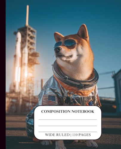 Dog Notebook for Kids Ages 8-12 Wide Ruled Composition Journal for Boys Teens School Supplies Handwriting Middle High Homeschool Creative Writing ... Black Design Theme Cover Shiba Inu Astronaut