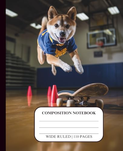 Dog Notebook for Kids Ages 8-12 Wide Ruled Composition Journal for Boys Teens School Supplies Handwriting Middle High Homeschool Creative Writing ... Design Theme Cover Shiba Inu Skateboarding