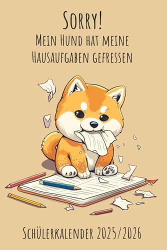 Hausaufgabenheft 2025/2026 Hund: Schülerkalender Welpen von August 2025 bis Juli 2026 | Wochenplaner, Terminkalender, Schulkalender und ... | ca. DIN A 5,132 Seiten, mit Shiba Inu
