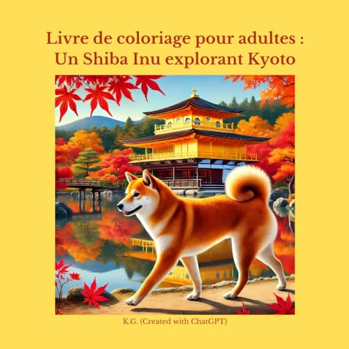 Livre de coloriage pour adultes : Un Shiba Inu explorant Kyoto