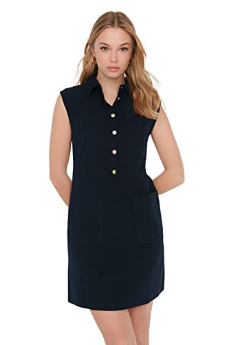 Trendyol Dam Mini Shift avslappnad vävd klänning, marinblå, 62 SE