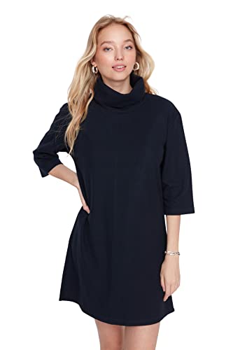 Trendyol Mini Shift Avslappnad stickad klänning för kvinnor, marinblå, S