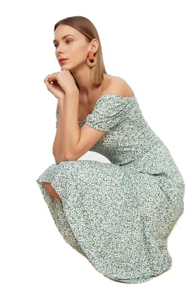 TRENDYOL Dam Midi Shift Dress klänning, Grön, 36