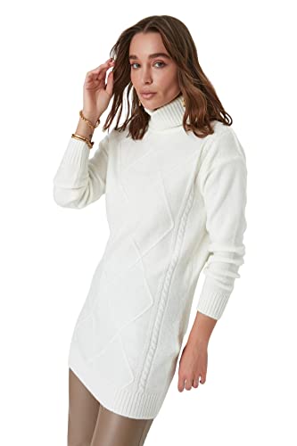 Trendyol Midi Shift avslappnad stickad klänning för kvinnor, Mint, S