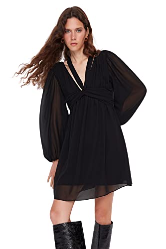 Trendyol Regular Fit Woven Dress Women Mini Shift Klänning i tyg med normal passform dam, Svart, 72