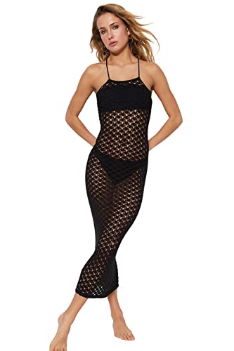 Trendyol Maxi Shift smal stickad klänning för kvinnor, Svart, M