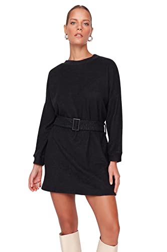 Trendyol kvinnor mini Shift avslappnad stickad klänning, Svart, L