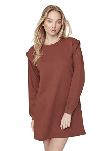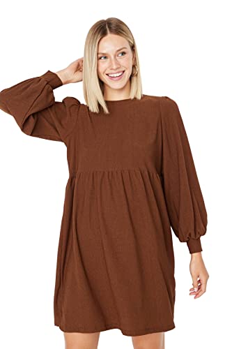 Trendyol Mini Shift Wide Stickad klänning för kvinnor, Brun, XS