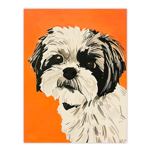 Artery8 Dog Lover Cute Shih Tzu Vibrant Orange Portrait Living Room Large Wall Art Poster Print Thick Paper 18X24 Inch