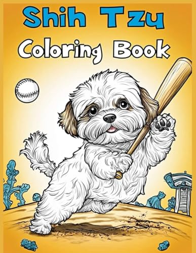 Shih Tzu Dog Coloring Book: Shih Tzus Playing Baseball – Fun & Relaxing Activity Book for Dog Lovers, Kids, Adults
