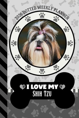 2026 Dotted Weekly Planner: Hardcover / Dated 6x9 Vertical Weekday Layout With Dot Grid Note Pages / Habit Tracker / Jan - Dec / Small Personal Diary / I Love My Shih Tzu Dog Art Cover