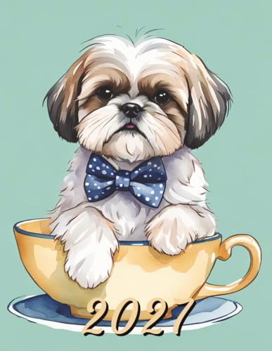 2027: Large Monthly Calendar Planner – Watercolor Shih Tzu Dog In A Teacup