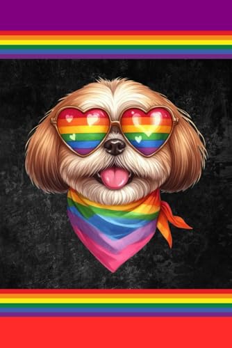 LGTBQ+ Pride Shih Tzu Dog with Rainbow Glasses: Blank 120 Page Lined Journal/Notebook/Poetry/Lyric Book