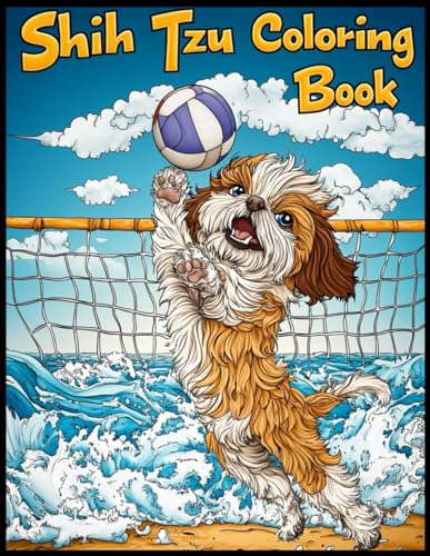 Shih Tzu Dog Coloring Book: Shih Tzu Spiking Volleyball Coloring Pages for Stress Relief