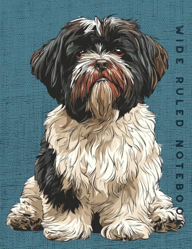 Wide Ruled Notebook: Black and White Shih Tzu Dog