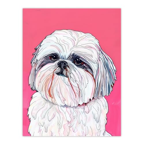 Artery8 Adorable Shih Tzu Dog Lover Vibrant Pink Portrait Living Room Large Wall Art Poster Print Thick Paper 18X24 Inch