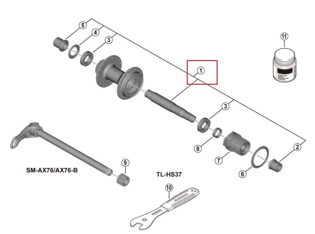 Shimano komplett navaxel till FH-MT401