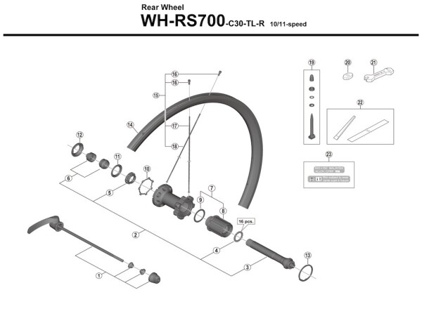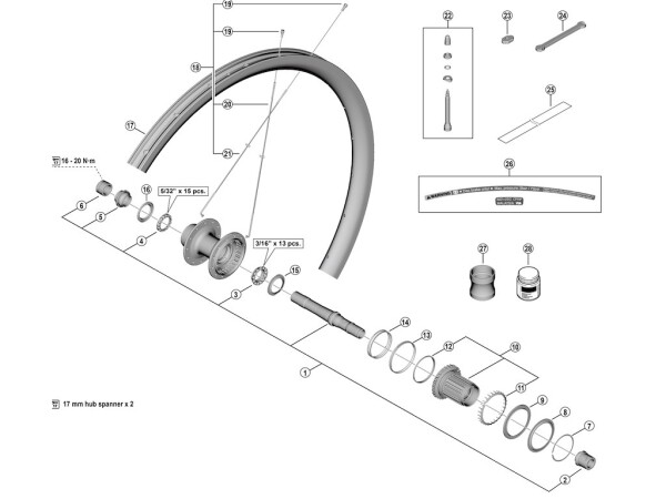 Shimano eker 297 mm lång för bakhjul modell WH-RS700-C30-TL-R